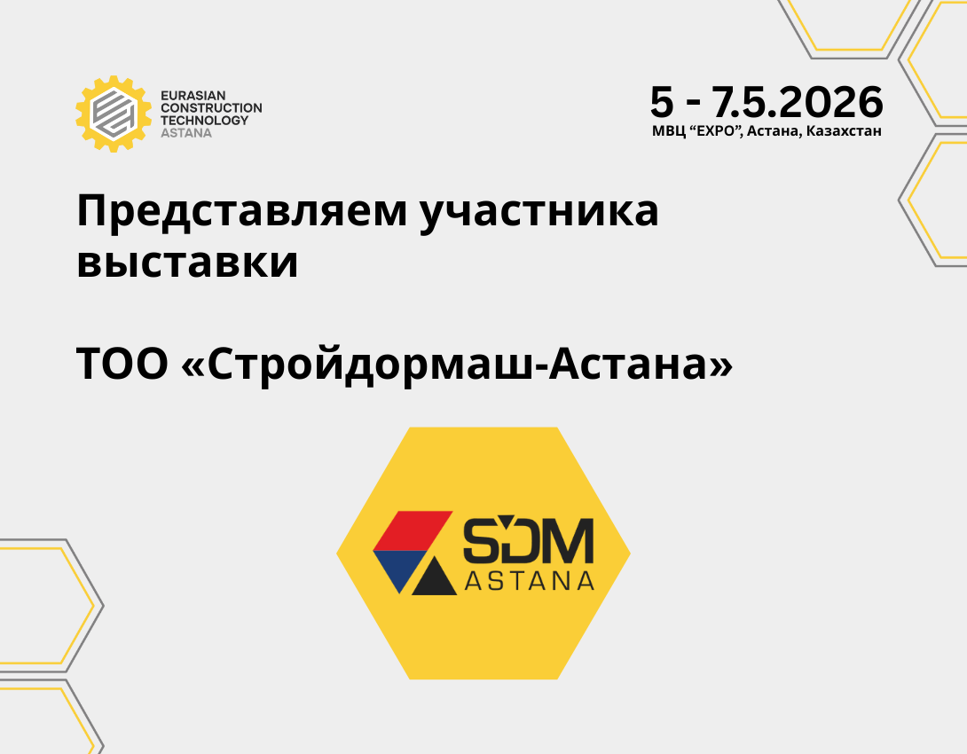 ТОО «Стройдормаш-Астана» примет участие в выставке Eurasian Construction Technology Astana. Компания работает на рынке Казахстана с 2003 года и является одним из ведущих поставщиков дорожно-строительной техники.